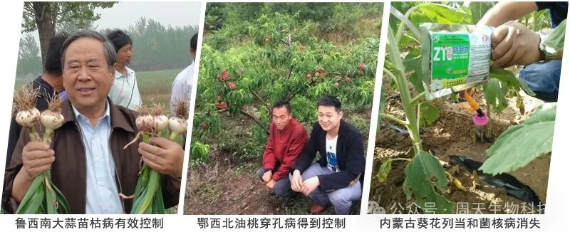 品牌是一种故事,是一种传奇。二十年来周天科技围绕生物技术与生态农业的发展,走遍了大江南北,攻克了一个又一个技术难题,为农业提质增效提供了一套又一套的科学实用技术方案,创造了鲁西南大蒜苗枯病有效控制产量翻番、鄂西北油桃穿孔病得到有效控制、内蒙古葵花列当和菌核病消失不见、新疆的好多棉优质增产、攀枝花芒果白粉病防效明显、山东的大樱桃无病高产、邯郸的夏播玉米产量翻番、多胎多羔肉羊养殖成本减半效益翻番等等一个又一个传奇故事,周天科技美名传。