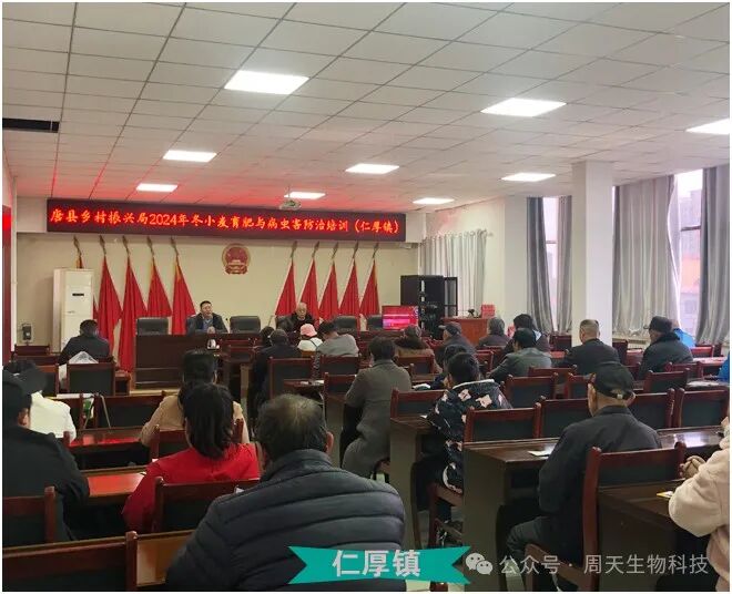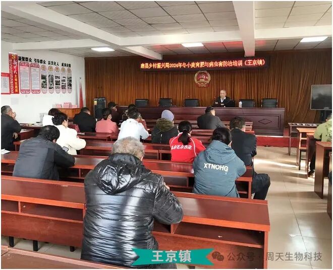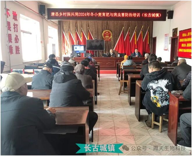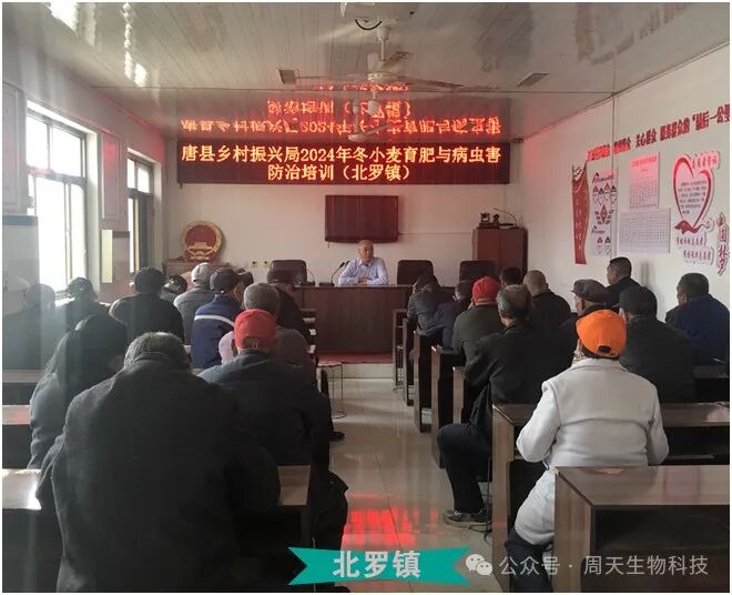 为强化科普惠农力度,推进农村特色产业与农业高质量发展,3月15日,河北新世纪周天生物科技有限公司技术人员一行,在保定唐县乡村振兴局相关人员的组织下,针对当地种植结构,为辖区北罗镇、仁厚镇、王京镇、长古城镇等四个乡镇开展了冬小麦育肥与病虫害防治实用技术培训,得到了当地政府、村民的一致好评与认可。
